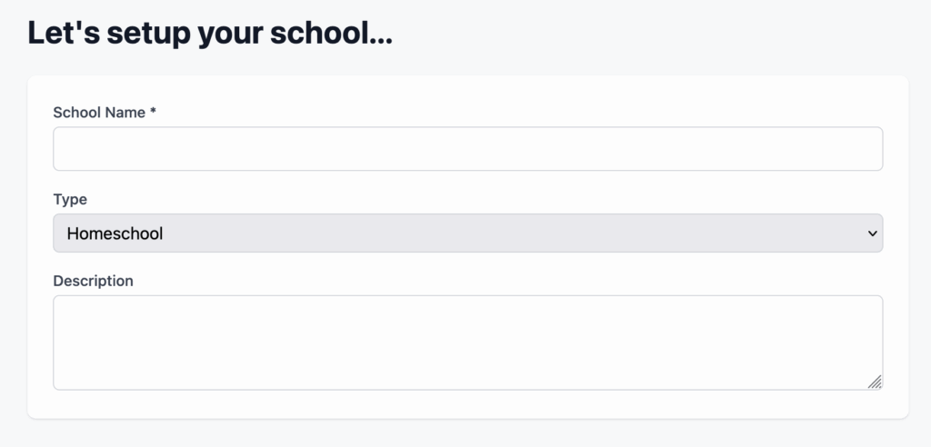 All of these settings can be changed later, so don’t worry if you aren’t 100% certain about what to go with. Fill in a name for your school, which will appear on grade and attendance reports, as well as transcripts. If you educate in a state that requires your school to be registered, we recommend using the same name you registered with.